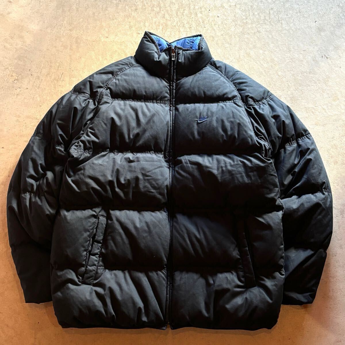 - 【00s】 NIKE ナイキ リバーシブル ナイロン ダウンジャケット ブラック×ブルー メンズ XL ロゴ 刺繍 プリント ジップアップ ビンテージ
