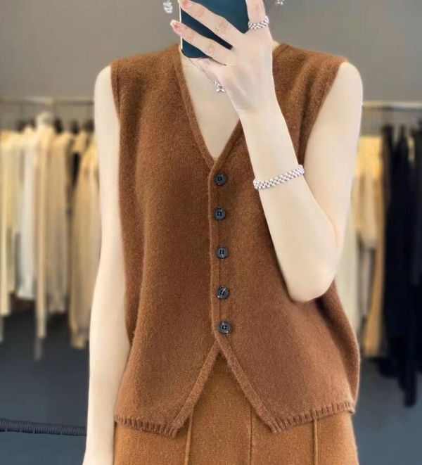 - 秋冬美品*ニットベスト 通勤 羽織り 袖なし トップス Vネック 前開き レディース ニット ジレ おしゃれ 大きいサイズ 着痩せ *ブラウン