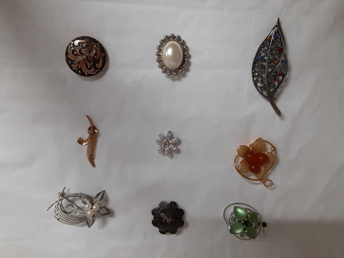 > ☆アンティーク レトロ ブローチ 7個☆スカーフ止め1個☆まとめ売り☆ ブローチ☆ ビンテージ☆ アクセサリー☆シルバー☆花柄☆葉☆
