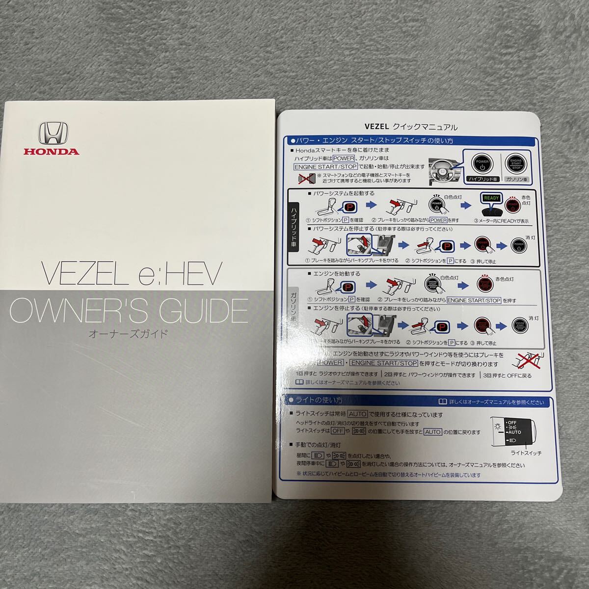 > ホンダ HONDA 取扱説明書 取説 クイックマニュアル オーナーズマニュアル ヴェゼル VEZEL eHEV ハイブリッド RV5