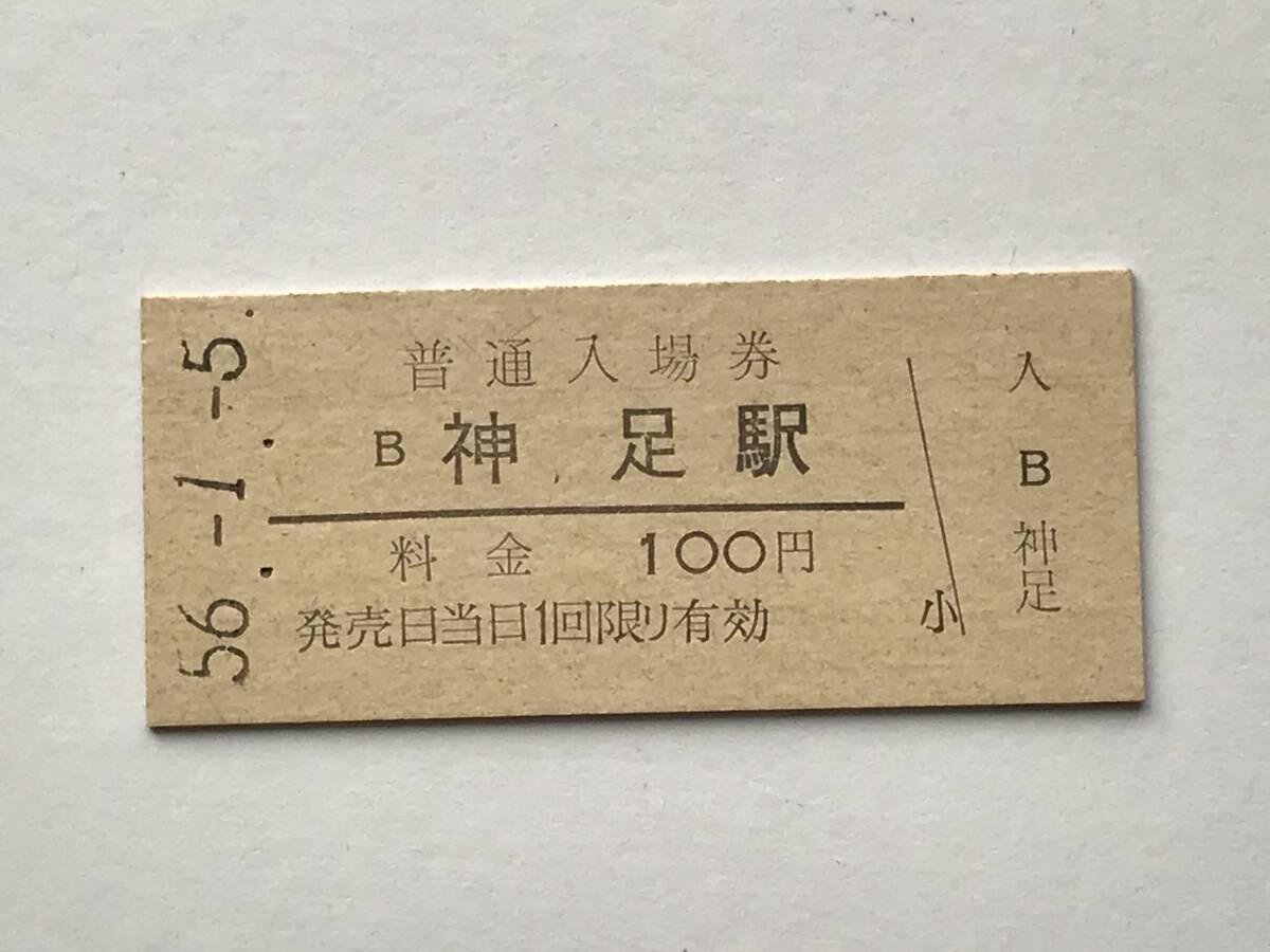 > 昔の切符 きっぷ 硬券 神足駅 普通入場券 料金100円 サイズ:約2.5×約5.8㎝ S56 HF5518 くるり岸田繁