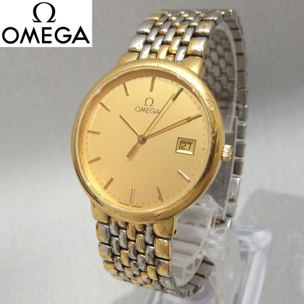 - ★OMEGA DeVille DL396.1012 Cal.1430 デイト コンビ クォーツ 腕時計 デビル オメガ★ジャンク