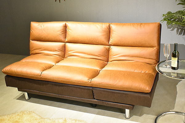 新素材ファブリック張り3WAYリクライニングソファーベッド キャメル