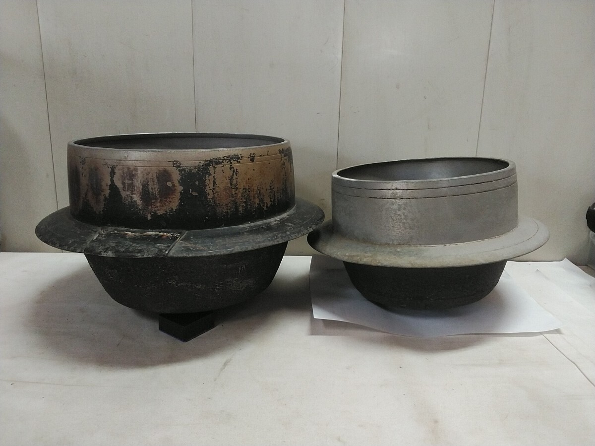 > レトロ!! 古民具 アルミ製 羽釜 お釜【 口径22.5cm 25.5cm 】2点セット 中古品 蓋無し 米炊き キャンプ アウトドア