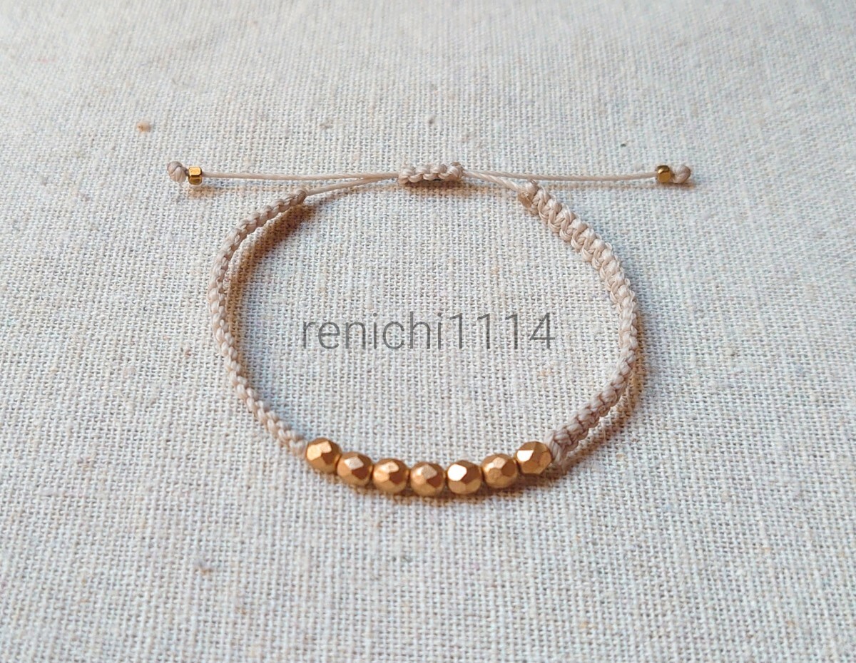 - 大人ブレスレット☆ベージュ&ゴールドビーズ☆チェコビーズ☆ワックスコード