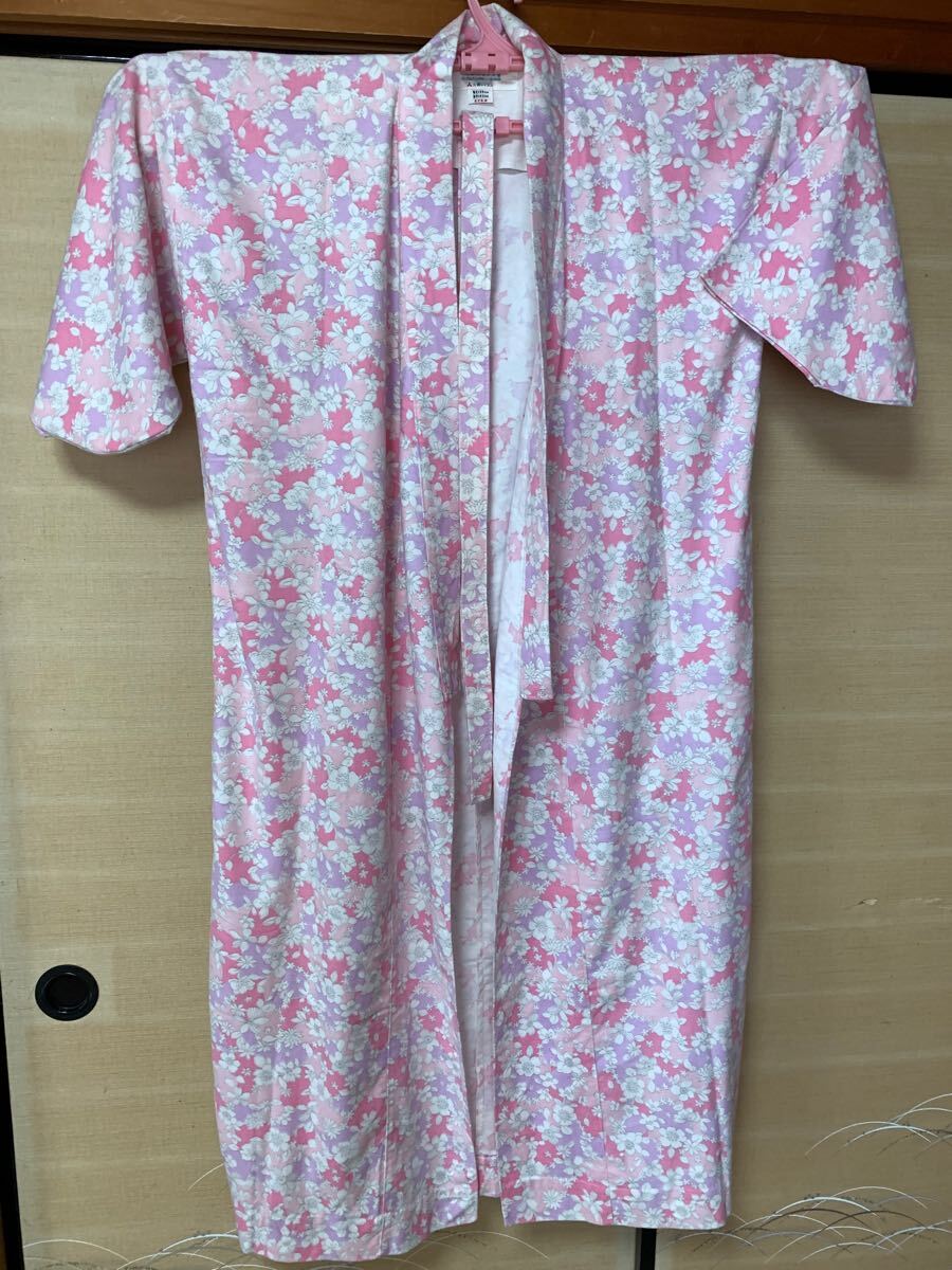- 未使用中古 レディース ネルの和風寝巻き 中肉地 ピンク花柄