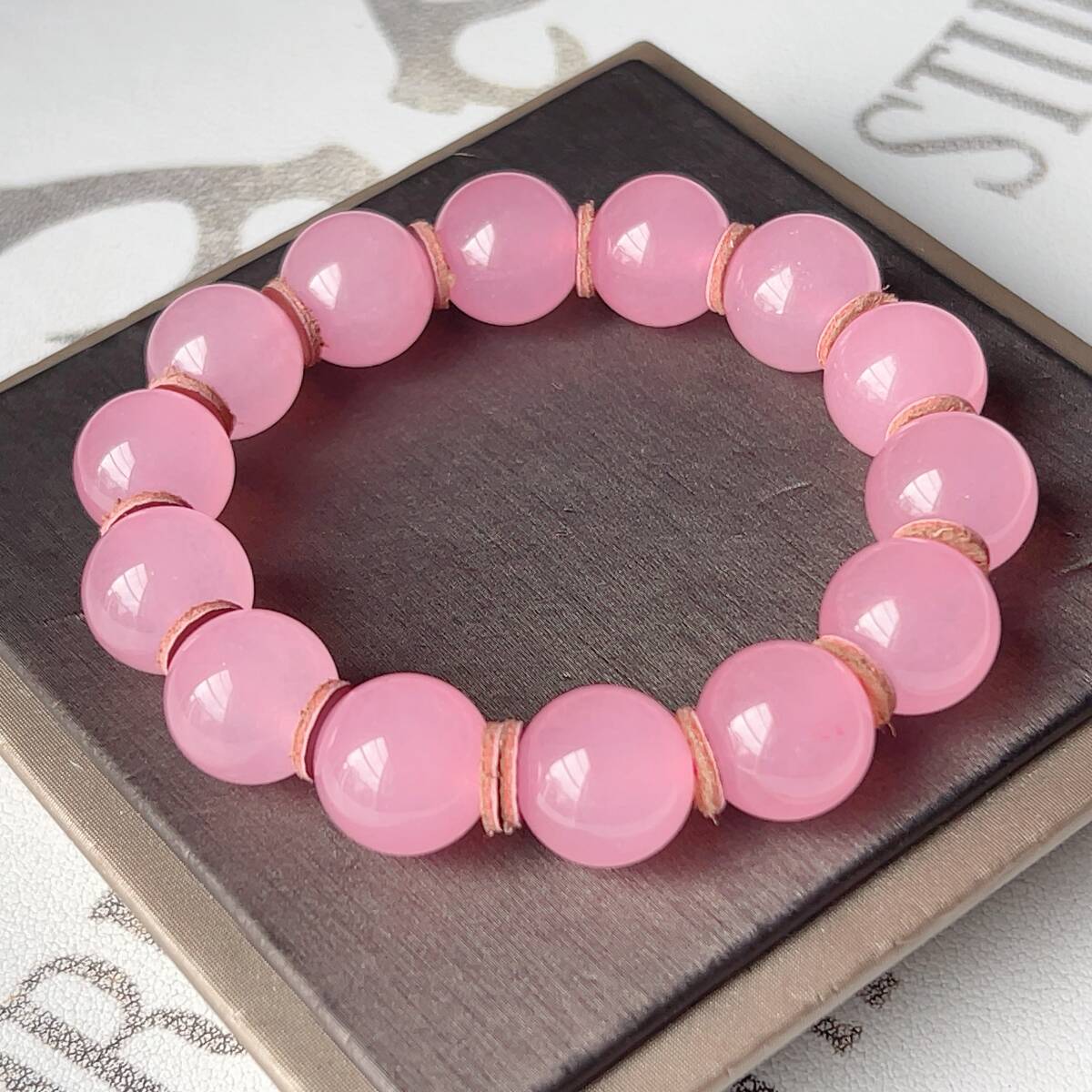 > ◇カルセドニー(玉髄)◇ピンク色◇ブレスレット◇パワーストーン◇天然石◇巾着袋付き◇プレゼントにも 033B11194