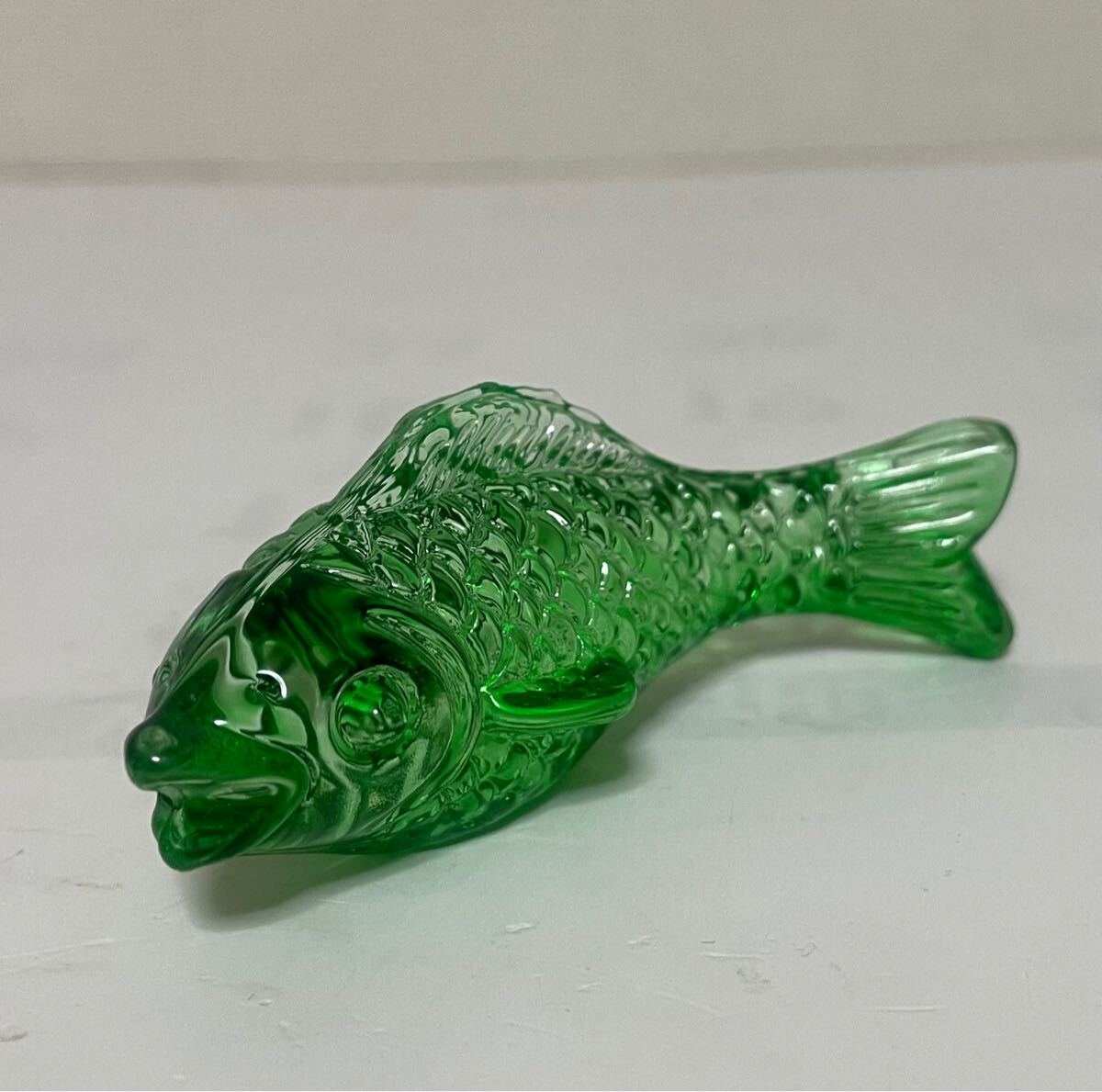 > ガラスの魚 瑠璃 置物インテリア フィッシュ グリーン 緑 小物ファッション 身長約7cm 重さ約30g 幸運 ラッキー