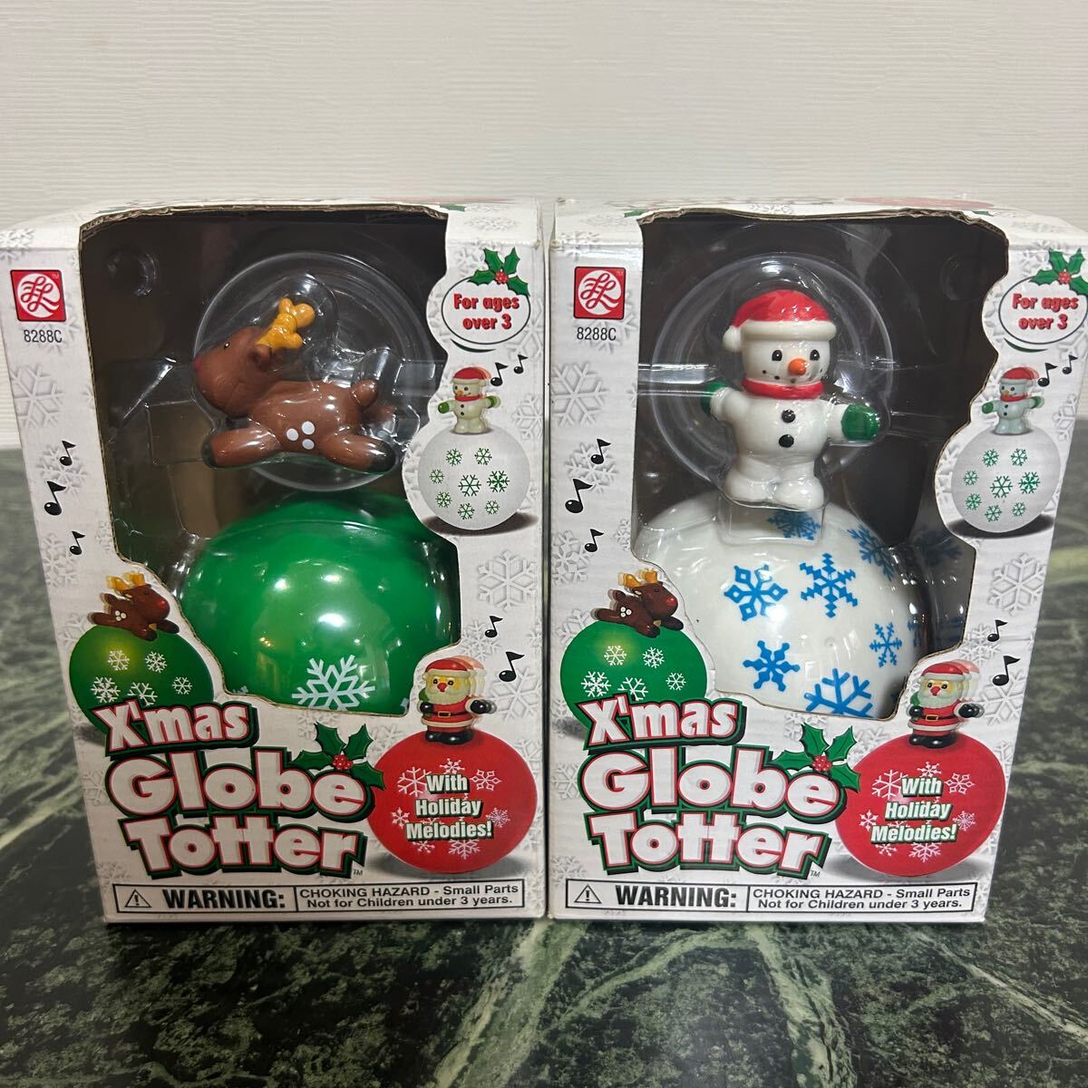 > 【未使用展示品】Xmas globe totter★クリスマスインテリア トナカイ スノーマン 雪だるま メロディ レトロ 置物 2個セット 動作確認済み