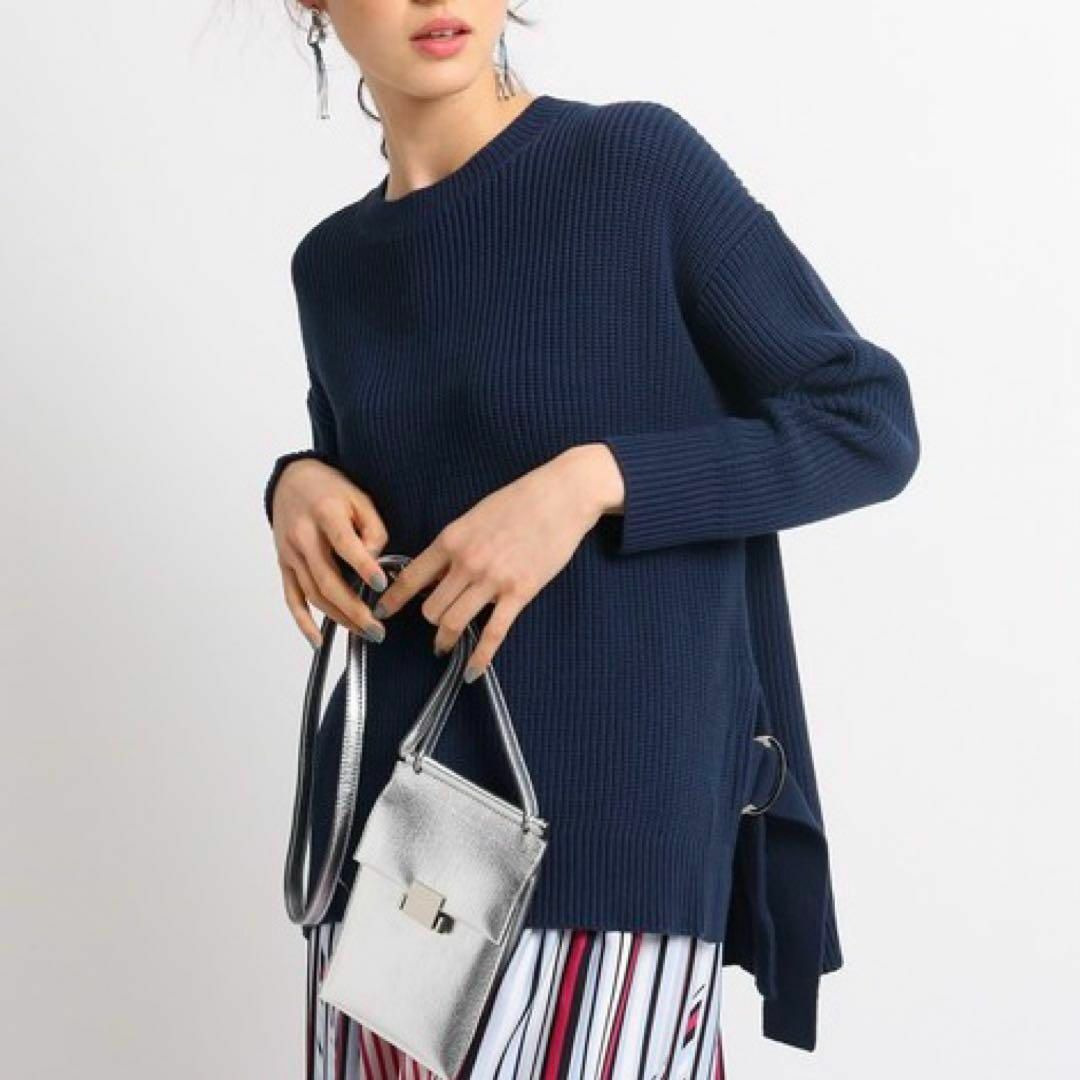 - 洗える!インディヴィ コットンベルト前後差ヘム ニット セーター プルオーバー ドロップショルダー ネイビー 紺 38サイズ INDIVI