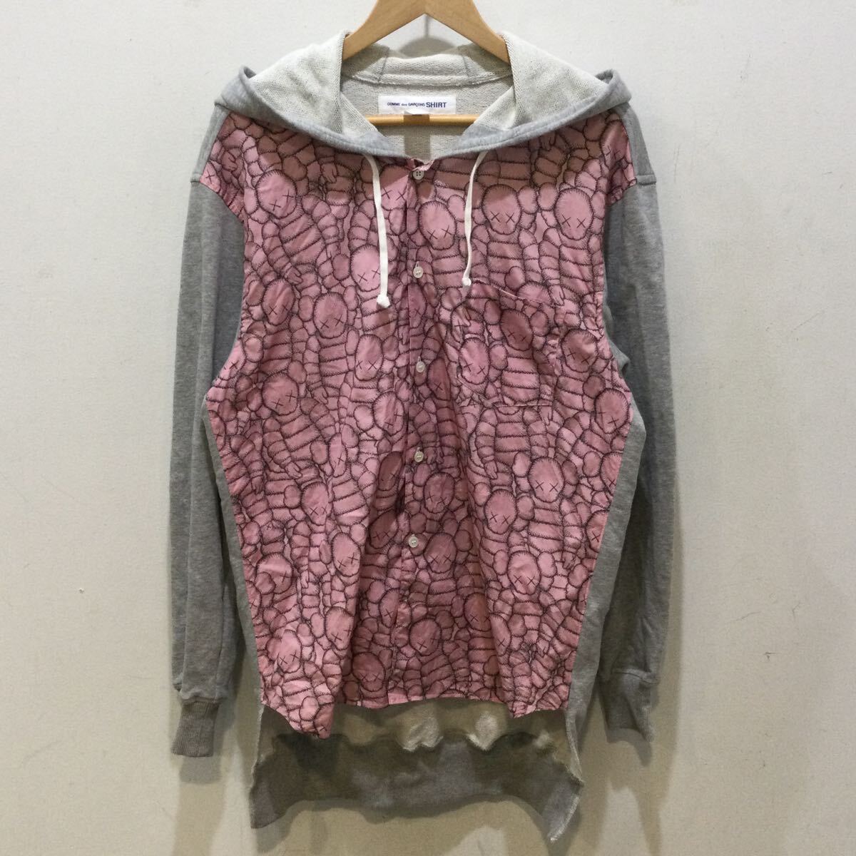 > COMME des GARCONS shirt コムデギャルソンシャツ FH-B024 KAWS カウズ コラボ hoodie パーカー グレー ピンク Sサイズ 696571