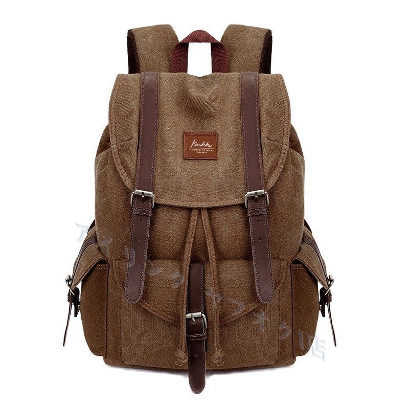 - 新品リュックサック ディパック収納力抜群 大容量 上質 キャンバス 帆布 PUレザー メンズ 通学 旅行 出張 鞄かばん カーキ