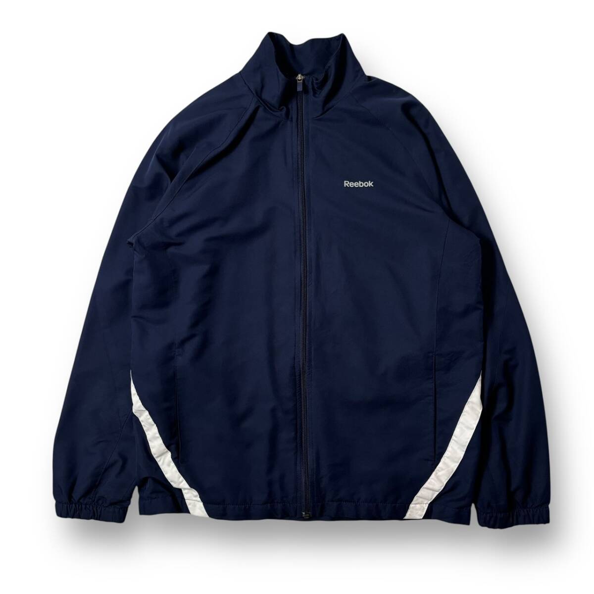 > 古着 Reebok リーボック ロゴ ワンポイント 袖ライン サイドライン ナイロンジャケット ウインドブレーカー 紺 ネイビー Sサイズ