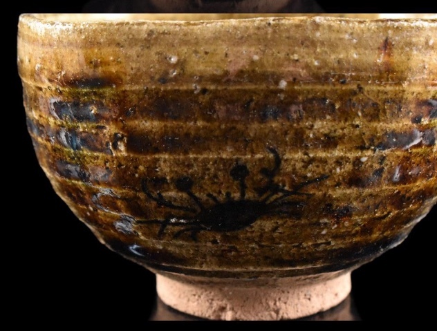 - 本物保証 北大路魯山人 黄瀬戸 蟹絵付茶碗 直径11.5cm 在銘 共箱 本物返品OK 241126−1