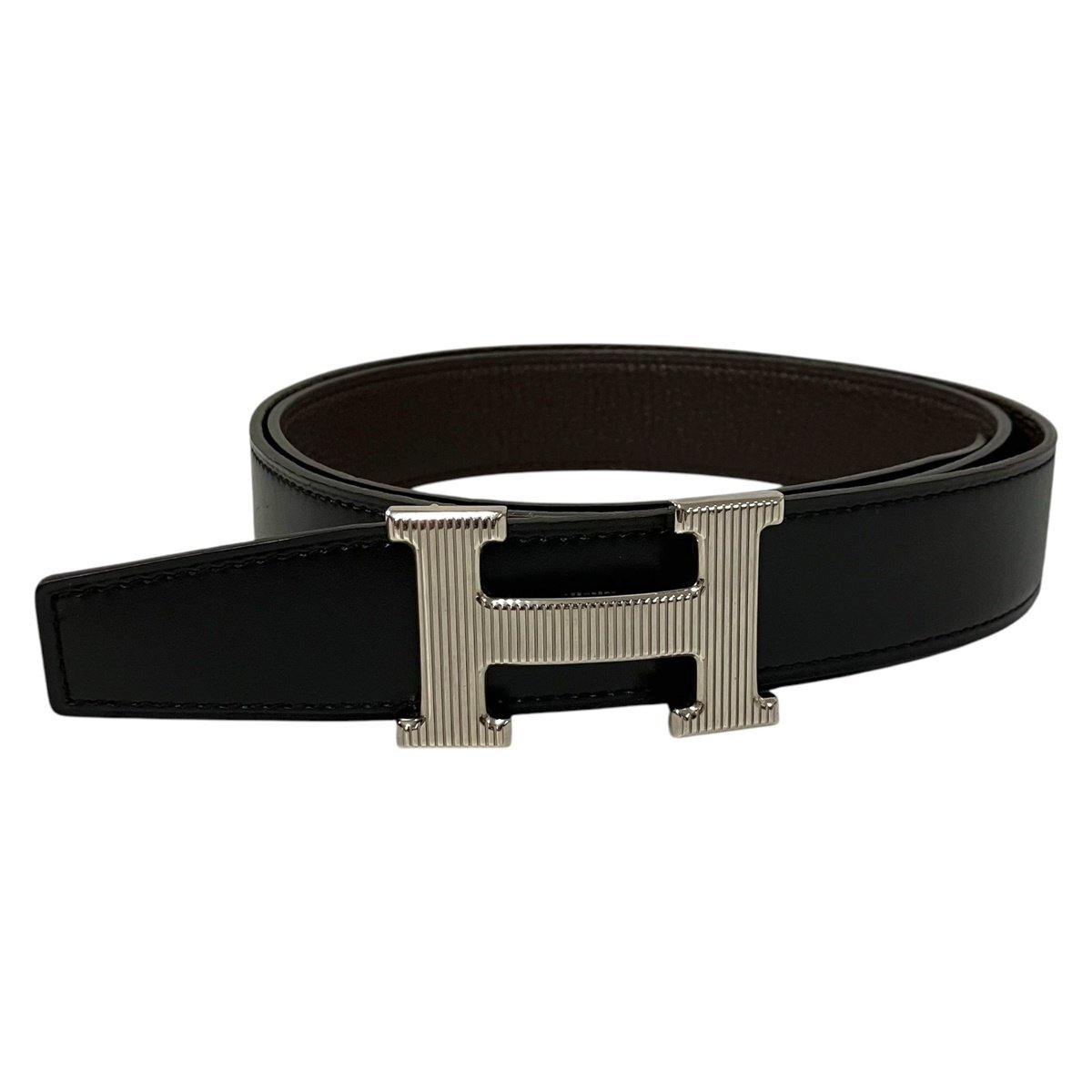 - HERMES エルメス コンスタンスベルト リバーシブル Hバックル □R復刻 ベルト ブラック シルバー ブラウン メンズ【中古】