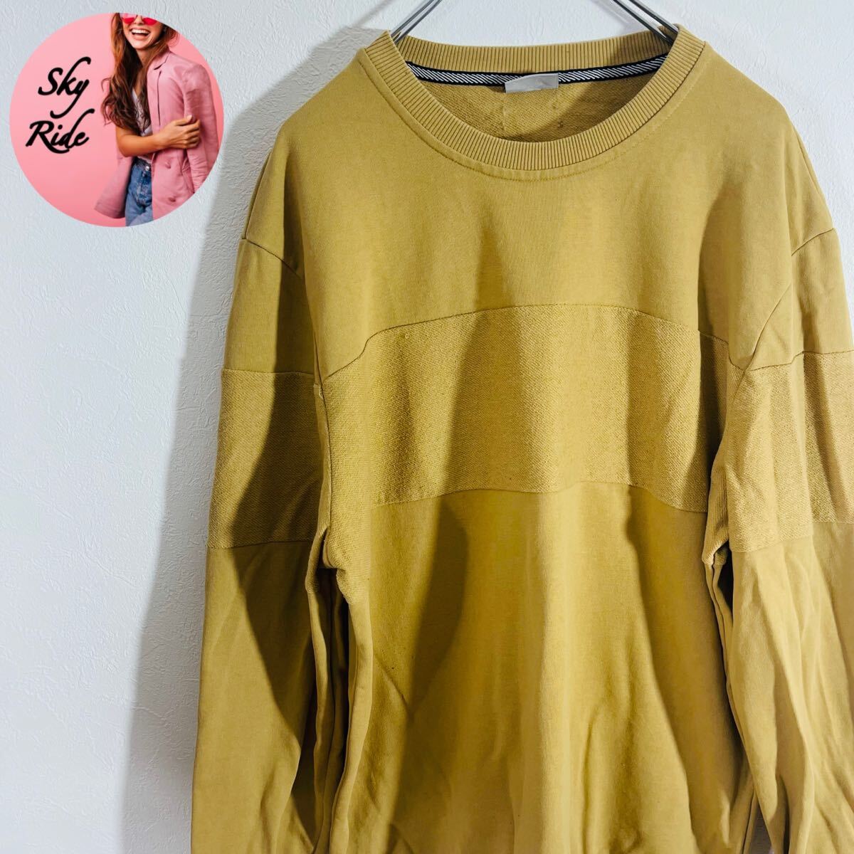 - DeFacto デファクト メンズ ヴィンテージ 無地 プルオーバースウェット トレーナー イエロー XXL 古着 #TB1011