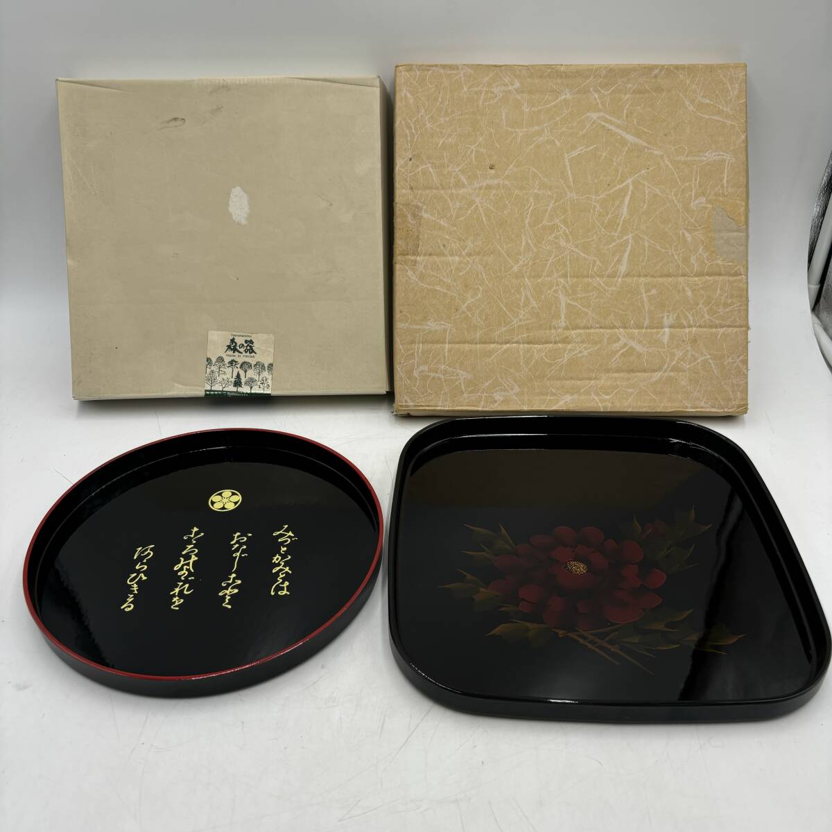 - お盆 森の器 トレー お茶受け皿 花柄 椿 アンティーク 2個セット