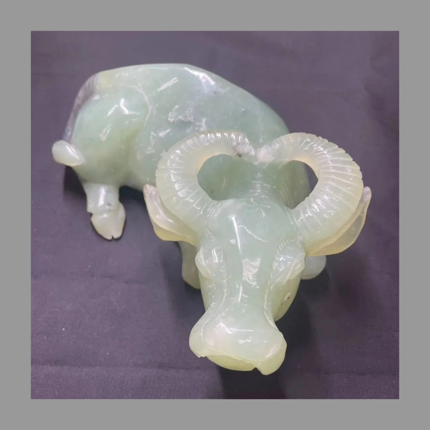 > 【磨きあげメンテナンス済】牛の置物 アンティーク ヴィンテージ レトロ 昭和 置き物 牛 縁起 ゲン担ぎ 福 紀元 中国 石