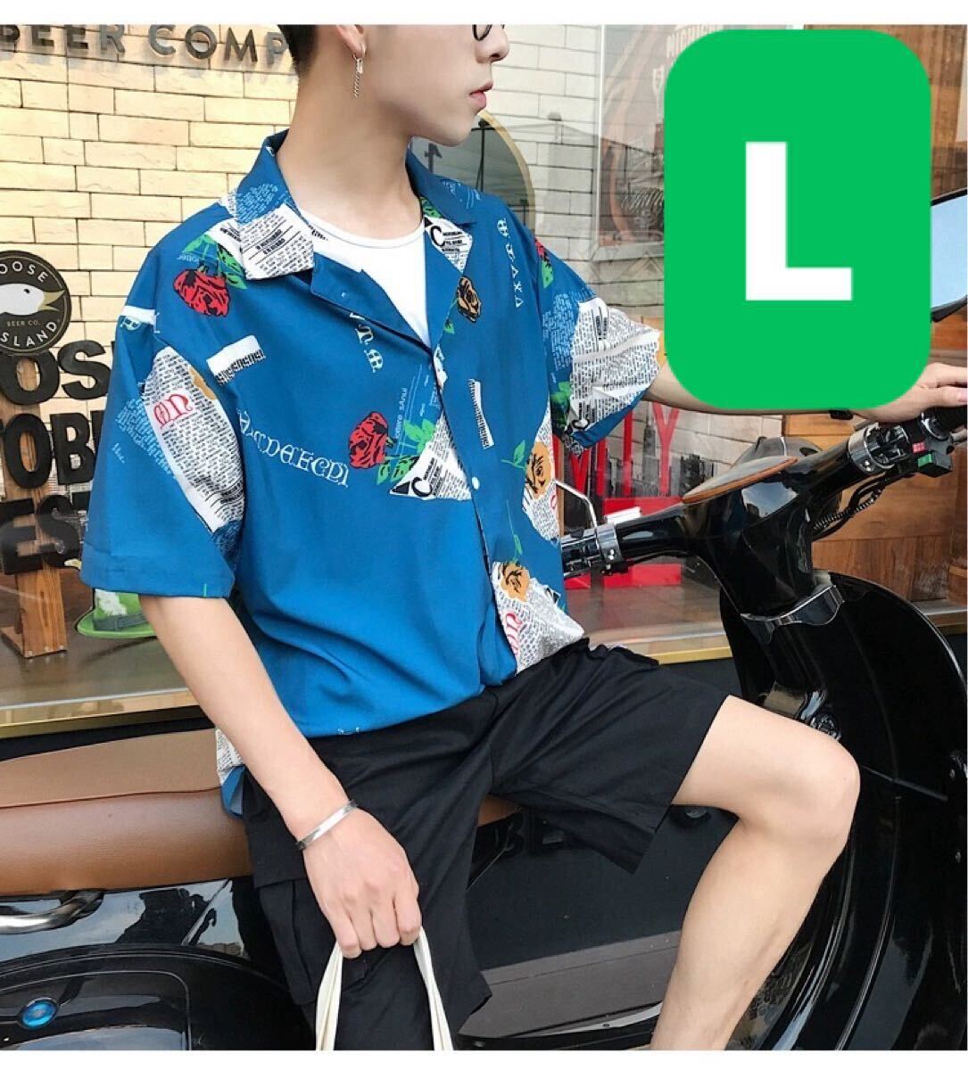 - シャツ 古着風 ビッグシルエット アウター トップス トレンド ストリート 渋谷 パルコ ヒカリエ 下北沢 今っぽ ユニセックス 青 L