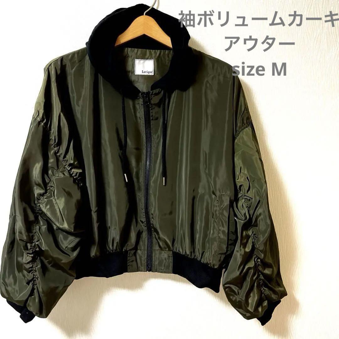 - 大人可愛いLutique フード付きボンバージャケット オリーブグリーンサイズM