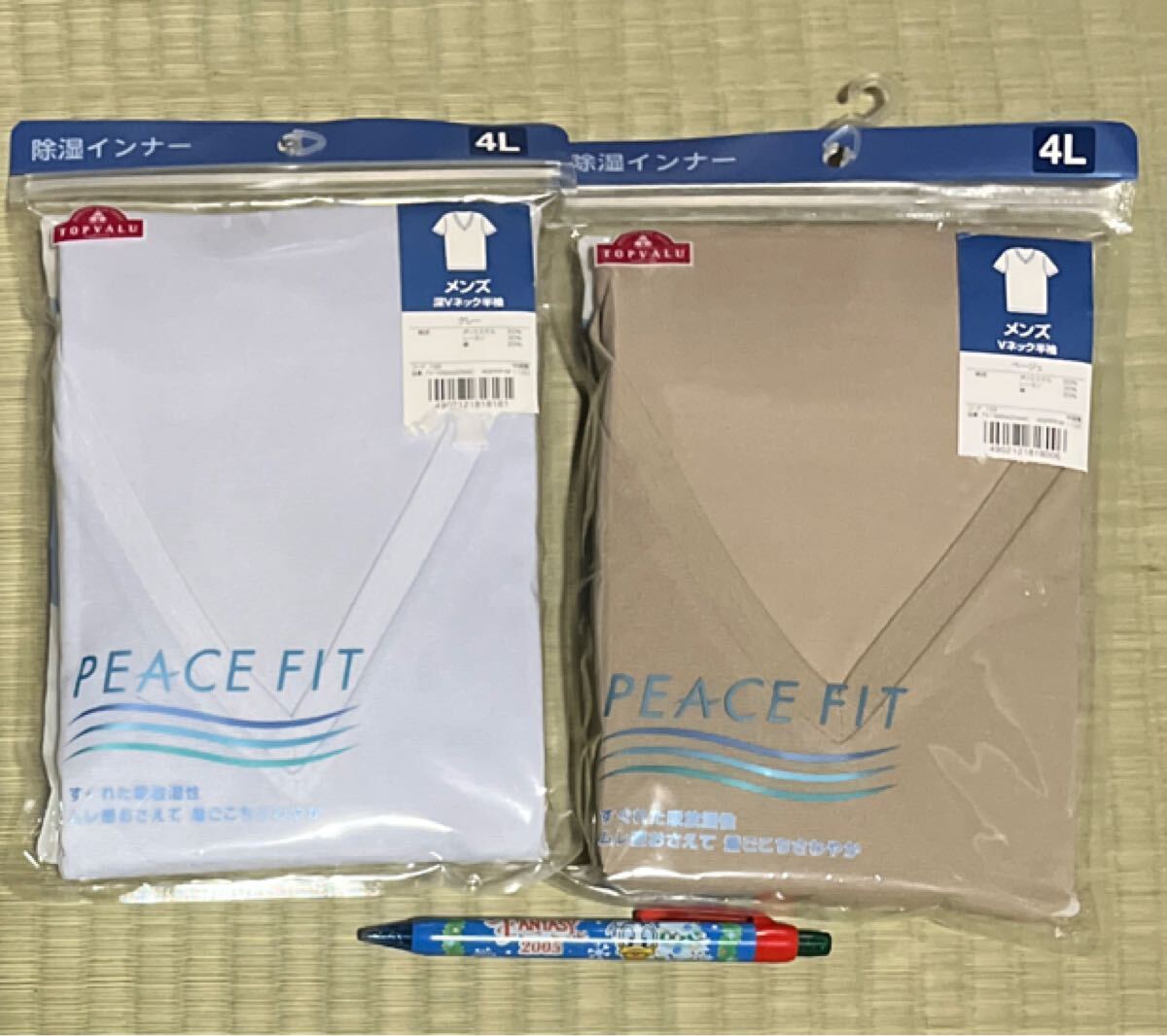 > 新品 未開封 袋入り★LL 半袖 深Vネック アンダーシャツ 2枚 グレー・ベージュ★吸放湿性 吸汗速乾 通気性 Wデオドラント 部屋干対応 下着