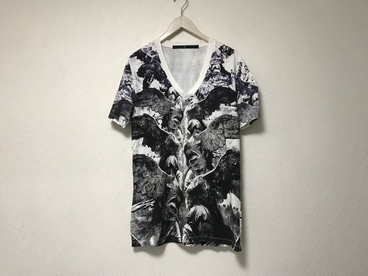 > 本物ノーアイディーNOID.コットンVネック総柄プリント半袖Tシャツメンズサーフアメカジミリタリーストリートスケーターワーク白ホワイト1S