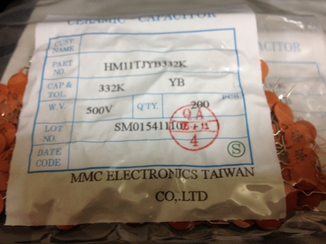 - 円板型セラミックコンデンサ HM11TJYB332K YB特性 500V 3300pF 10個入