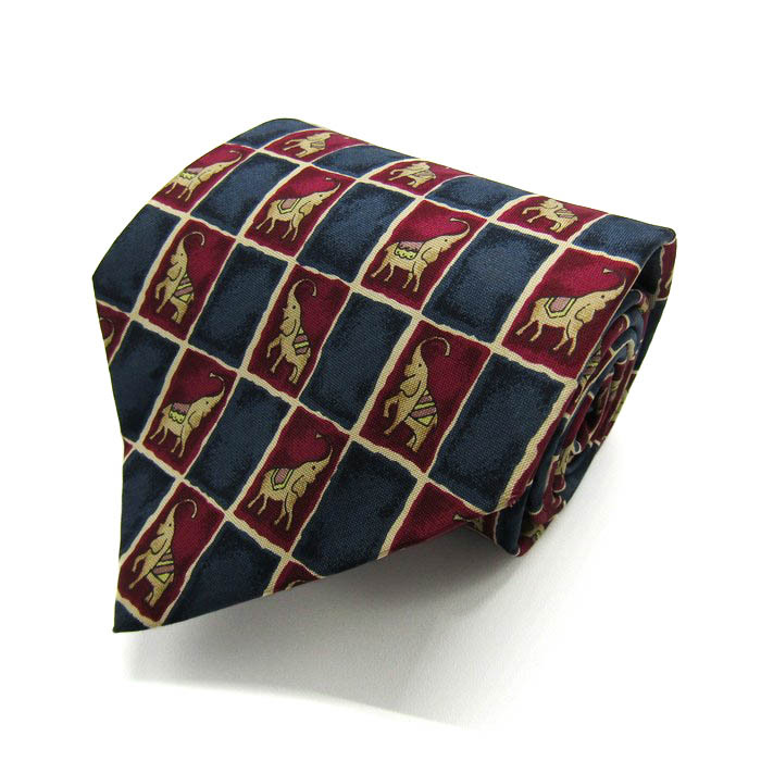- ジムトンプソン ブランド ネクタイ 格子柄 動物柄 ゾウ シルク PO メンズ ネイビー JIM THOMPSON