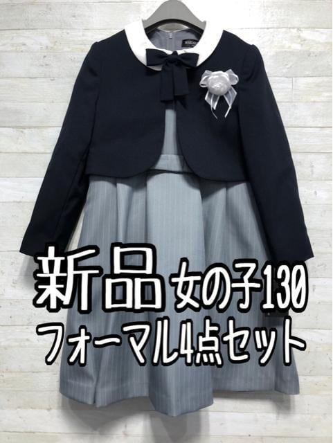 - 新品☆女の子130紺×グレー系♪フォーマルアンサンブル4点セット♪〇A760