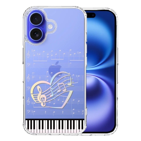 - iPhone16 ケース クリア piano 1 ハート スマホケース 側面ソフト 背面ハード ハイブリッド
