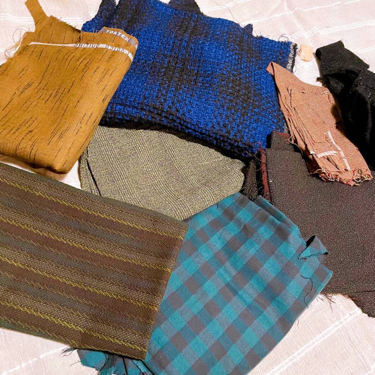 - ヴィンテージ ビンテージ Wool 生地 8種 色々セット!ストライプ 無地 チェック カスリ ネップ パッチワーク ハンドメイド ハギレ 1950's