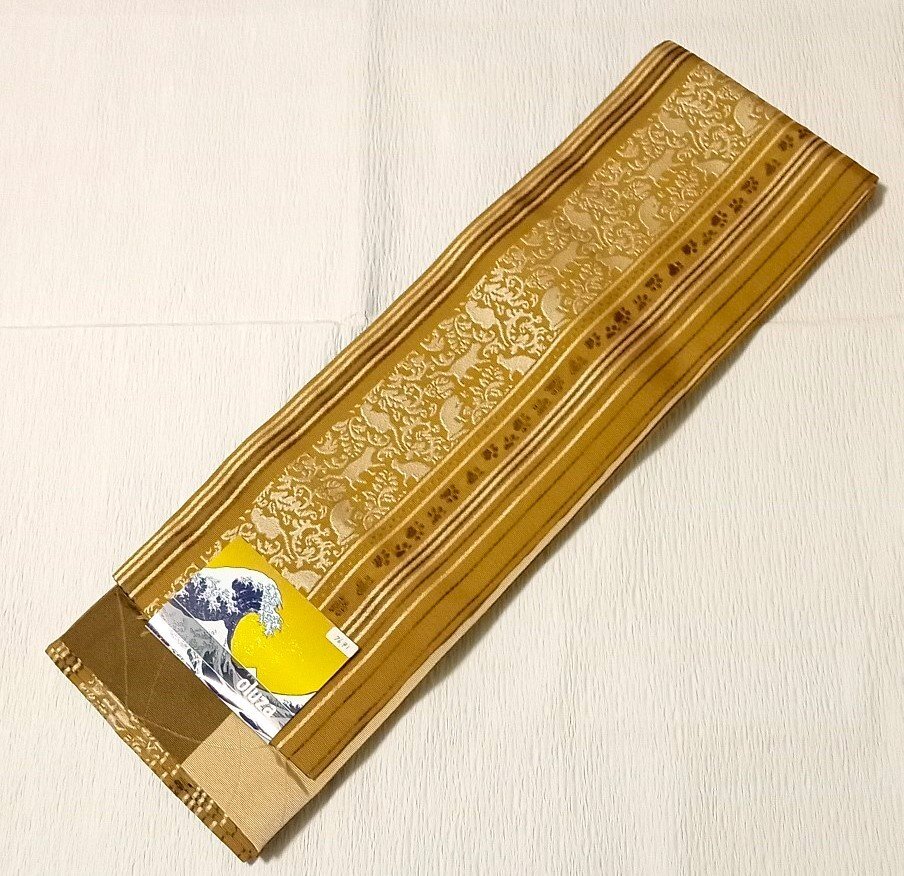 - 7691 両面半幅帯ロングサイズ【猫の散歩*カラシ】-