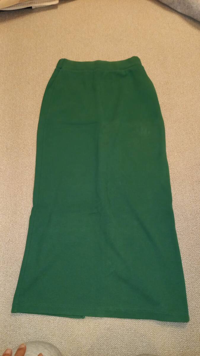 - ☆ レディース ロングスカート フリーサイズ 緑色 (古着)