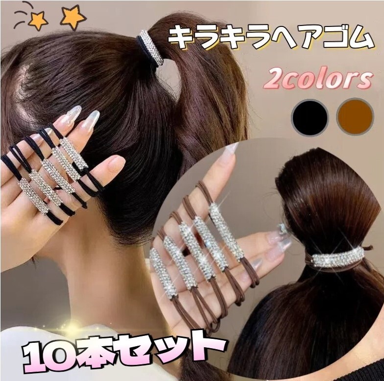 - 【お得な2色10本セット】新品送料無料!ラインストーンヘアゴム 可愛い 韓国 キラキラ ヘアアクセサリー レディース 髪ゴム 春 夏 秋 冬