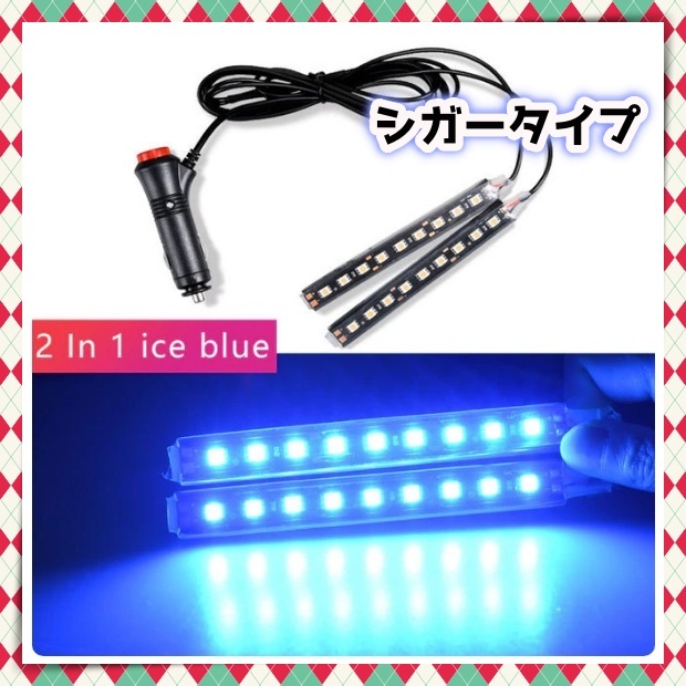 - 2本 LED フロアライト アイスブルー シガーソケット スイッチ付き 内装 足元 照明 LEDテープ 12V イルミ 簡単 カスタム ドレスアップ 汎用