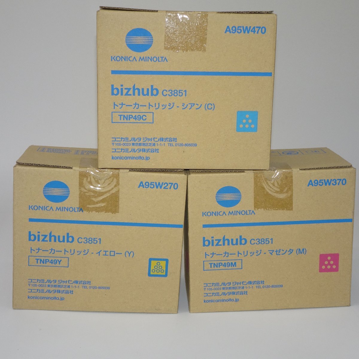 > ☆3色 純正 KONICA MINOLTA コニカミノルタ トナー TNP49C/TNP49M/TNP49Y (A95W470/A95W370/A95W270) NO.6490