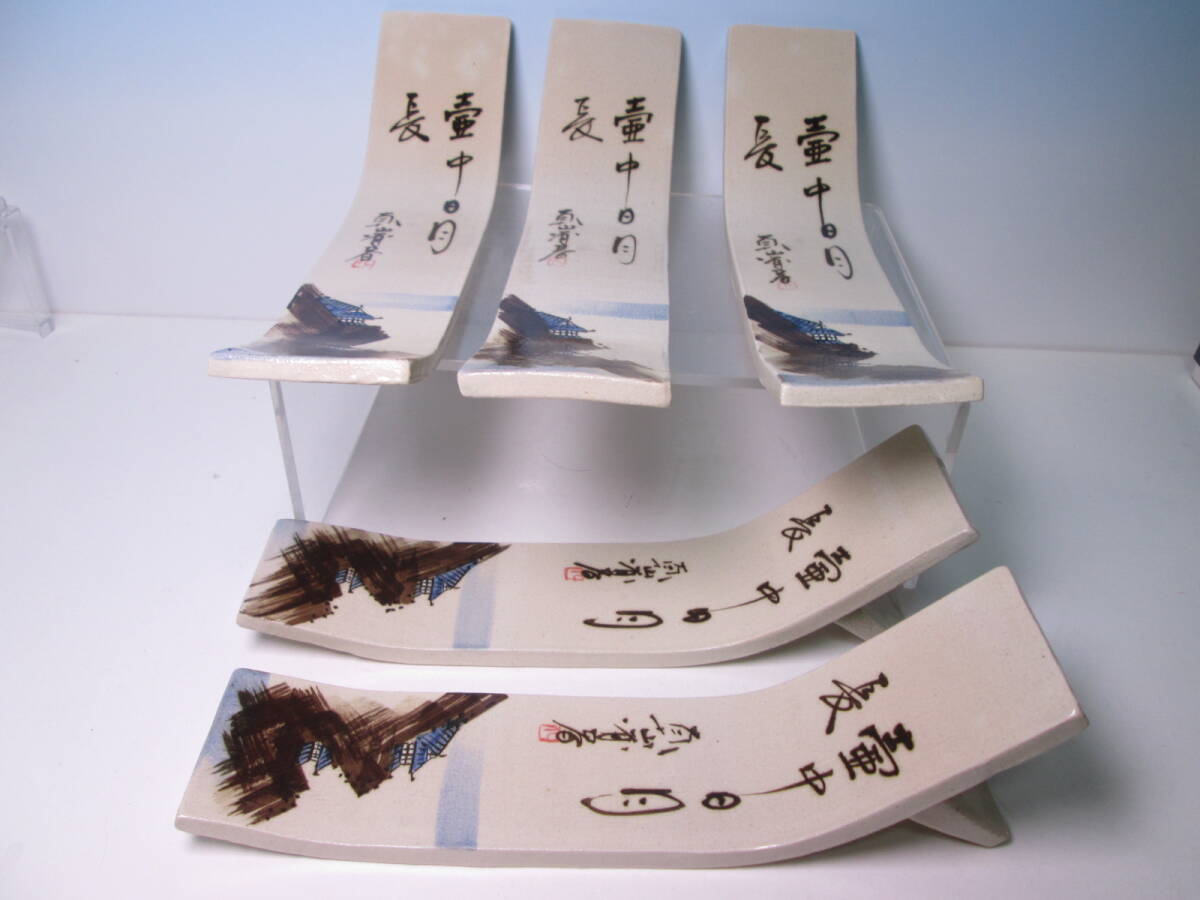 - ☆お料理屋さんの器 在印 乾山 『壷中日月長』 短冊形 長向付 五客 箱無し 長皿/懐石/割烹/日本料理