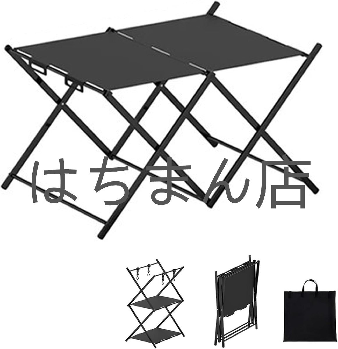 - キャンプラック アウトドアテーブル フォールディングラック 2/3段物置き棚 シェルフ フック4個付き ソロキャンプ グランピング BBQ 2段