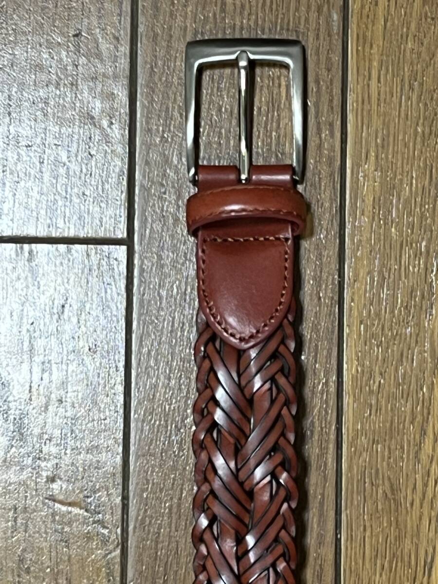 - 【質屋 尾張屋商店 東京】 (4694)☆未使用☆ 牛革メッシュベルト フリーサイズ 赤茶