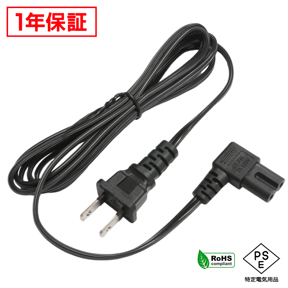 - メガネ型 電源ケーブル L型 1.8m PSE RoHS対応 1年保証
