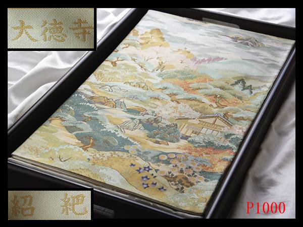 > P1000西陣逸品 紹巴織 大徳寺 灰黄緑色地 気品豊かに 正絹六通高級美術袋帯 ◇検◇簪着物名古屋帯帯締め