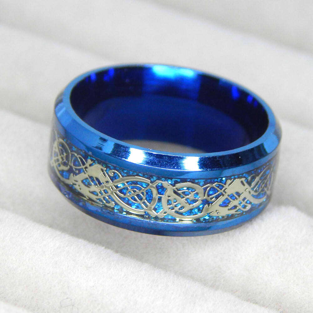 > 厳選 希少品 オススメ 新品未使用 限定入荷 ドラゴンピースデザイン 男女兼用 ステンレスリング 指輪 おしゃれ シルバー×ブルー 19号