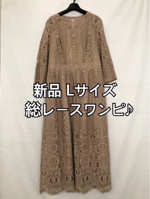 - 新品☆L♪ベージュ系♪総レースのワンピース結婚式などに☆y199