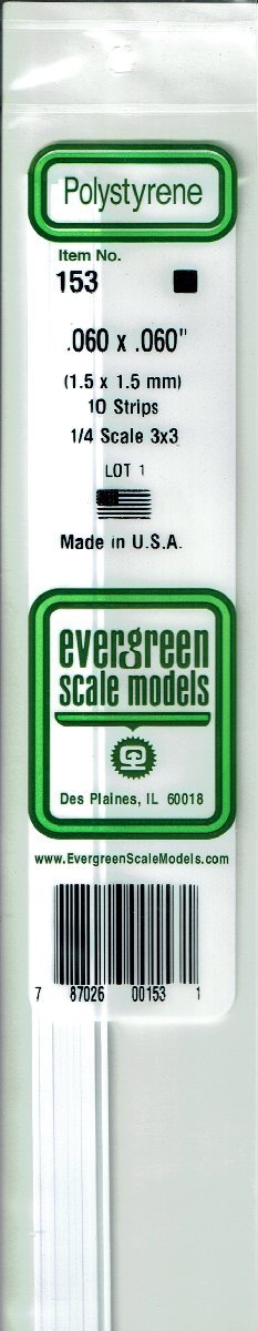 - エバーグリーン .060x.060 プラ棒 1.5x1.5mm 10本入り