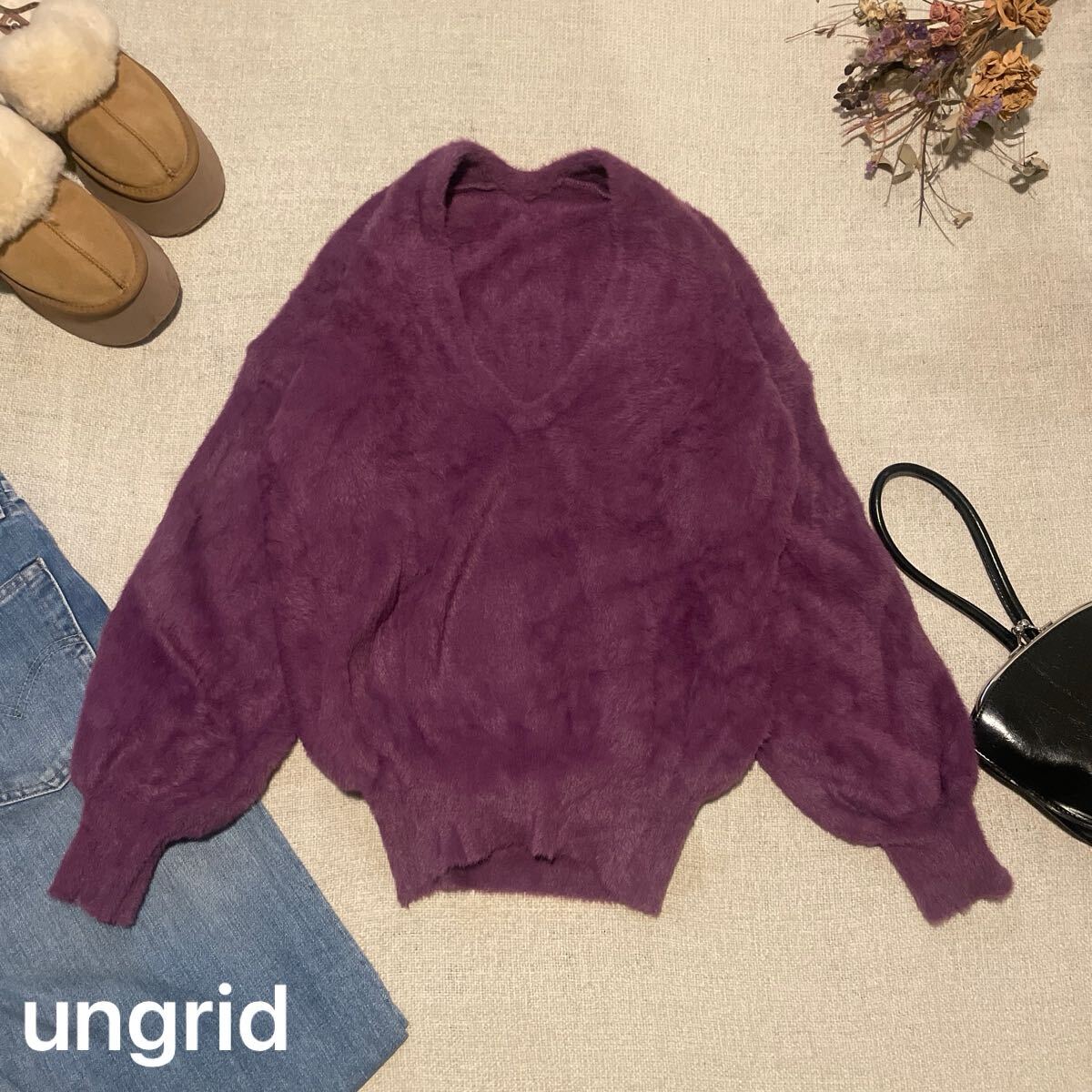 - アングリッド セーター ニット ネコヤーンバックボリュームニット フラッフィー シャギー Vネック レディースフリーサイズ 美品