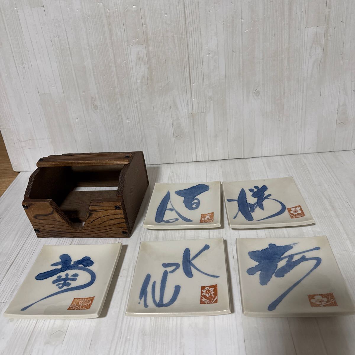 - 小皿 角皿 和食器 皿 銘々皿 昭和レトロ 染付 愛陶 A704