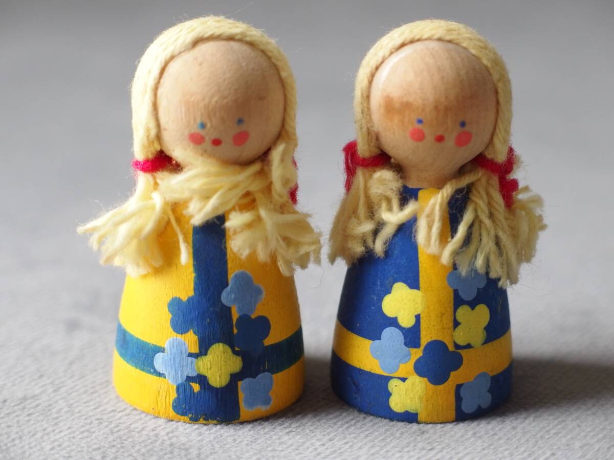 - 2体セット!北欧雑貨 スウェーデン ヴィンテージ 木製人形 Ellerbergs (ミニチュア、ドールハウス、ドール人形) 高さ4.5cm