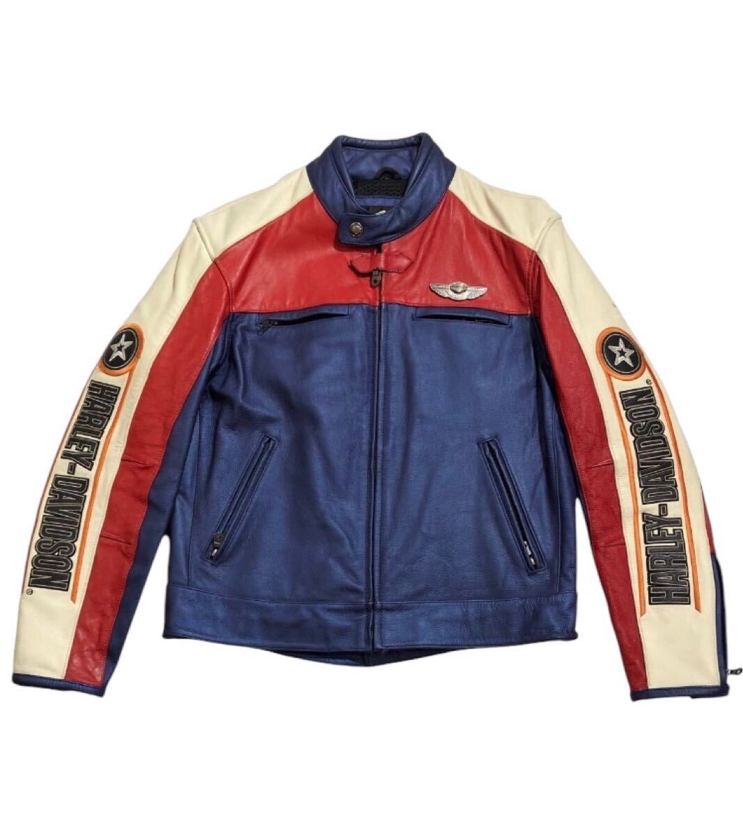 > 希少 少々訳有 ■ HARLEY DAVIDSON ハーレーダビッドソン ■ 100周年 記念 プレート ロゴ 刺繍 本革 レザー シングル ライダースジャケット