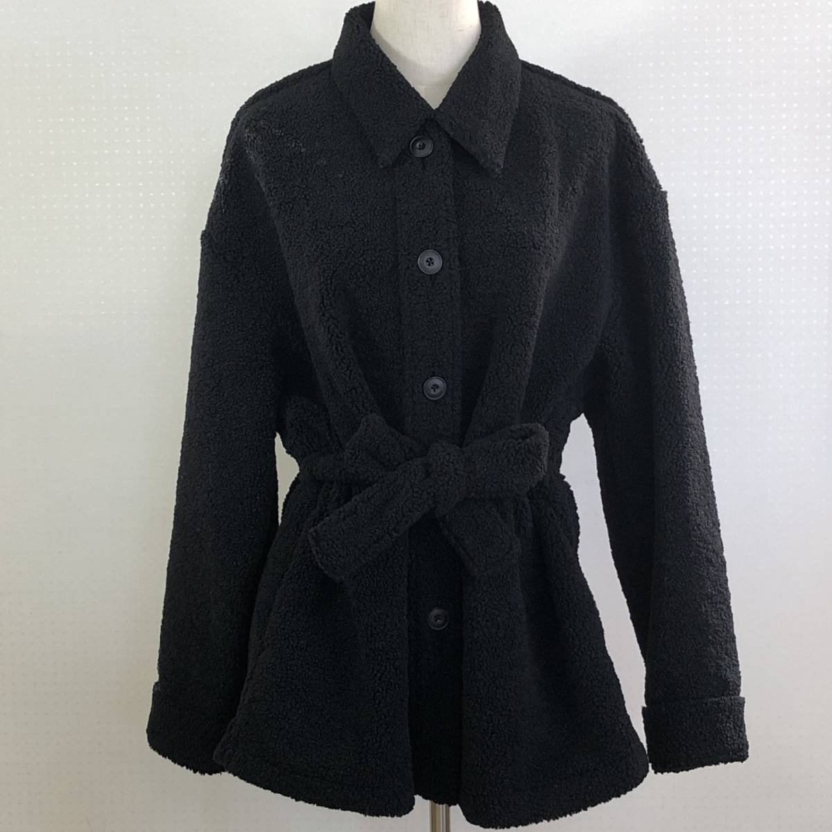 - YZ0422 UNIQLO ユニクロ レディース アウター ボア コート 長袖 厚手 サイドポケット XLサイズ ブラック 黒 モノトーン 防寒 おしゃれ 冬