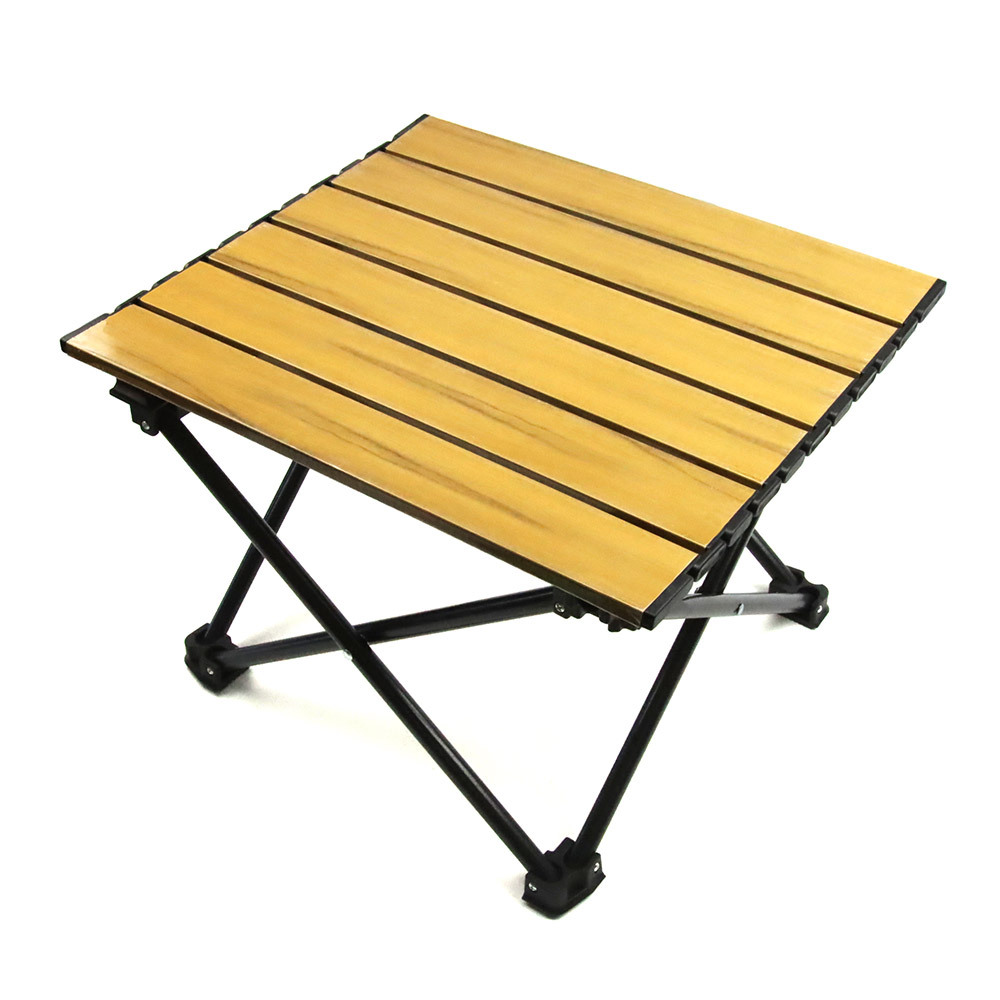 - 折りたたみキャンプテーブル40cm×35cm×28cm アウトドア用 ロールアップピクニックテーブル コンパクト収納 スチール製 25kg耐荷重 木目調